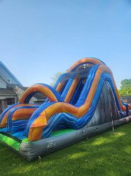 Fight your way up this rock wall, just to find yourself staring at the top of the 16' double lane slide! Or add this to your Obstacle Course to make the finish a little more difficult. This can be attached to either Radical Run Obstacle Course making it up to 95' long!!